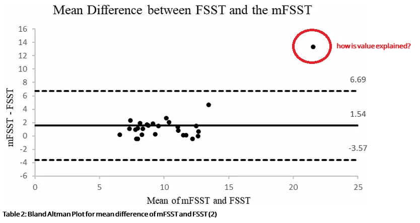 With the current modification (i.e. replacing the canes with tape), the use of anticipatory and reactive balance strategies to overcome the hurdles (i.e. canes) in the FSST has been reduced. Thus, are we still measuring the same degree of balance? How have different phases of stance and different biomechanical properties of balance been altered with this modification, and can we agree with the author that it made little to no difference in the ability to measure dynamic balance? While the concurrent validity was high, this was only the case with the fastest readings. Why? Is there a possible tradeoff between sensitivity and specificity? We could have answered more questions had the researcher considered determining the MDC (minimally detectable change) and even an ROC (receiver operating characteristic). And finally, I think that the changes that have been instituted warrant further classification of this test and description of its relationship to fall risk and the differences in results between fallers and non-fallers, because I think it is prudent to see them as two different tests. The benefit it adds to measurements within PwPD who have poor dynamic balance is acknowledged.